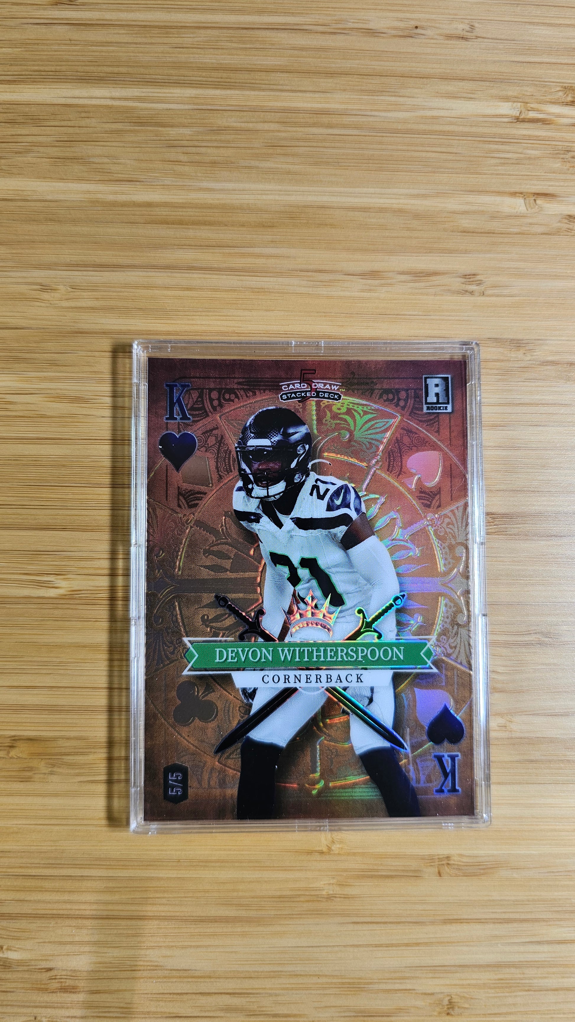 - Features Devon Witherspoon rookie card in the King of Spades parallel, serial numbered /5 (only five copies exist).