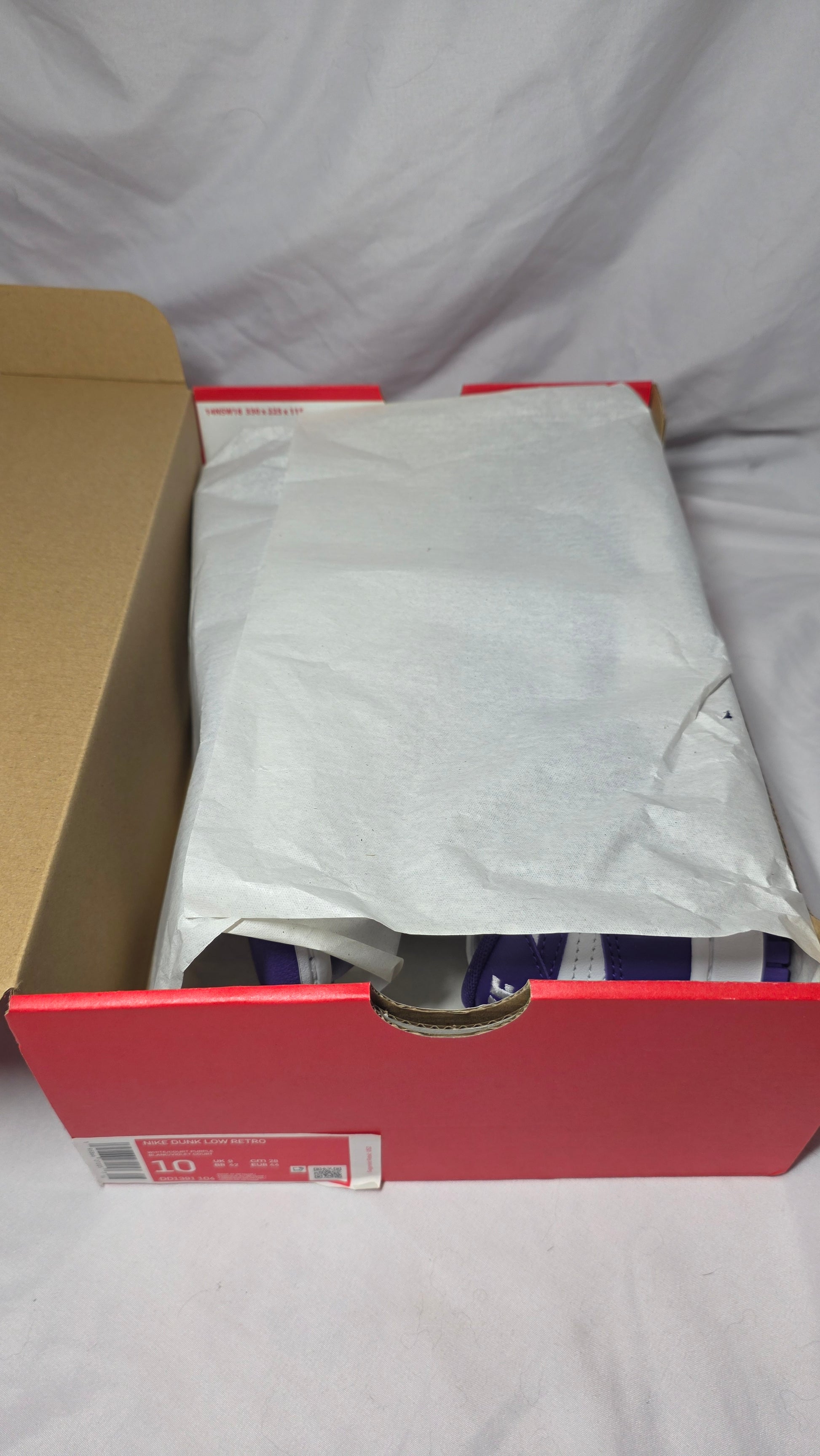 The Nike SB Dunk Low Retro “Court Purple” delivers a timeless SB look with bold color blocking inspired by classic basketball heritage. This pair is brand new, comes in the original box, and was purchased personally through the Nike App, ensuring full authenticity. With premium leather, Zoom Air cushioning, and the iconic Dunk silhouette, this colorway is a standout for collectors, skaters, and everyday sneaker fans.
